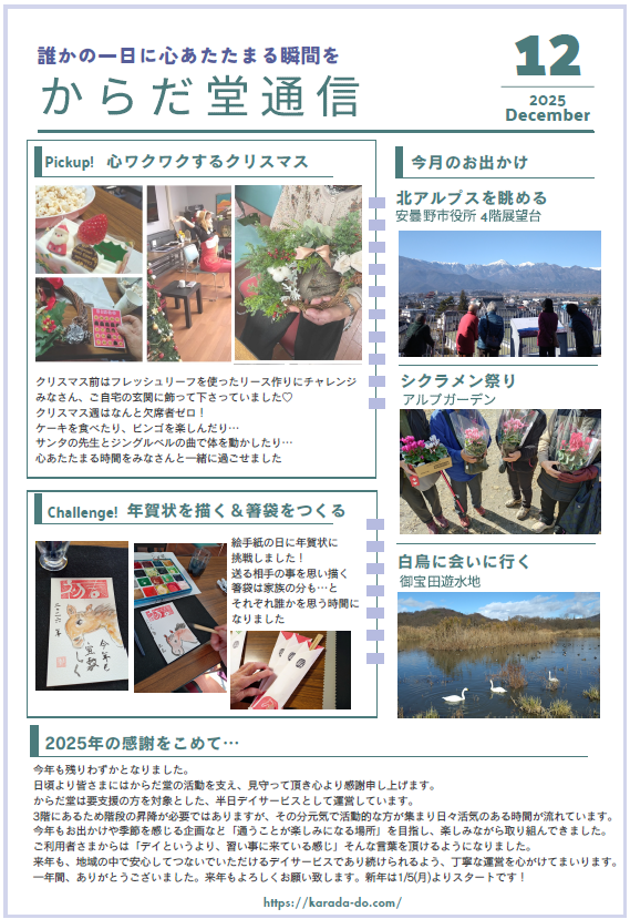 少し遅くなりましたが12月の「からだ堂通信」ご覧ください!